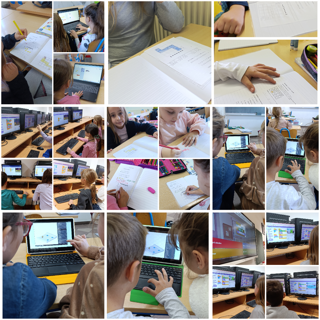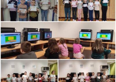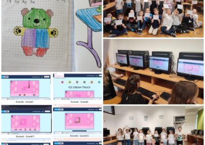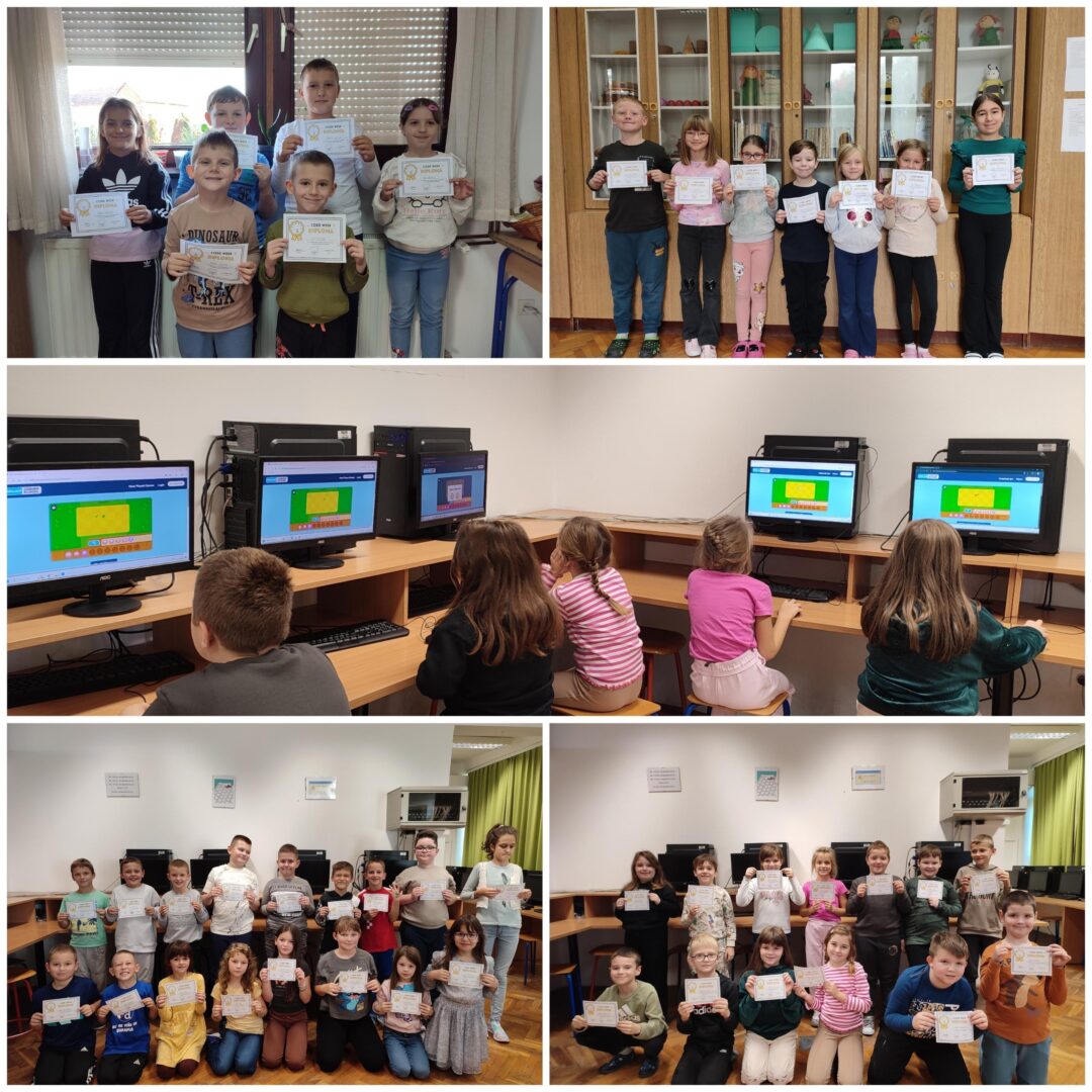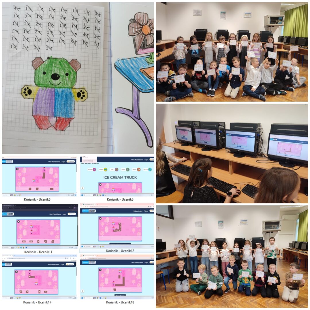 Učenici trećeg razreda ponavljali su planiranje koraka i razmišljanje o redoslijedu radnji pomoću kvizova, a zatim su programirali u igrama Blocky Games i u Scratchu izrađivali program „Tajni broj“. Četvrtaši su kvizom i zadatkom „Lozinka i zmaj“ razvijali logiku, planiranje i preciznost u programiranju.