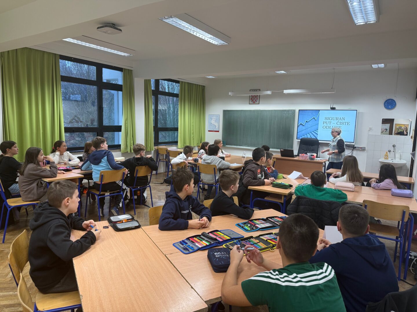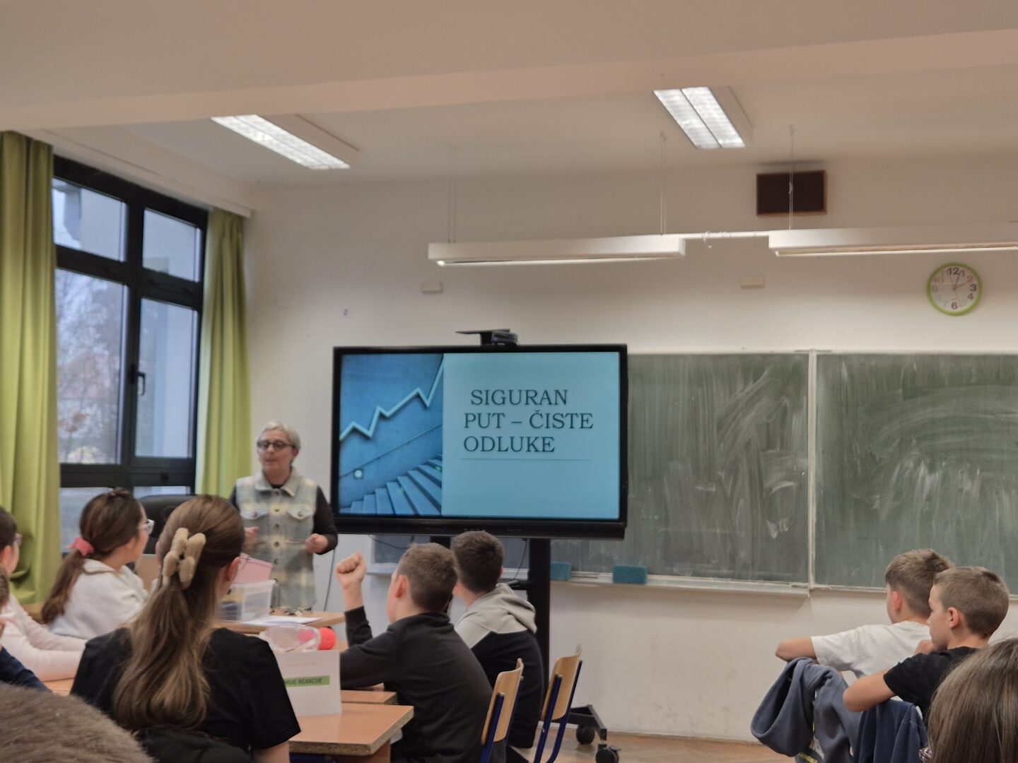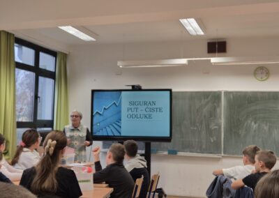 – Kratko predavanje u obliku prezentacije „Siguran put – čiste odluke“ zahvaljujući kojem su učenici razumjeli zašto i na koji način su opasni nikotin, alkohol i droge za sigurnost u prometu.