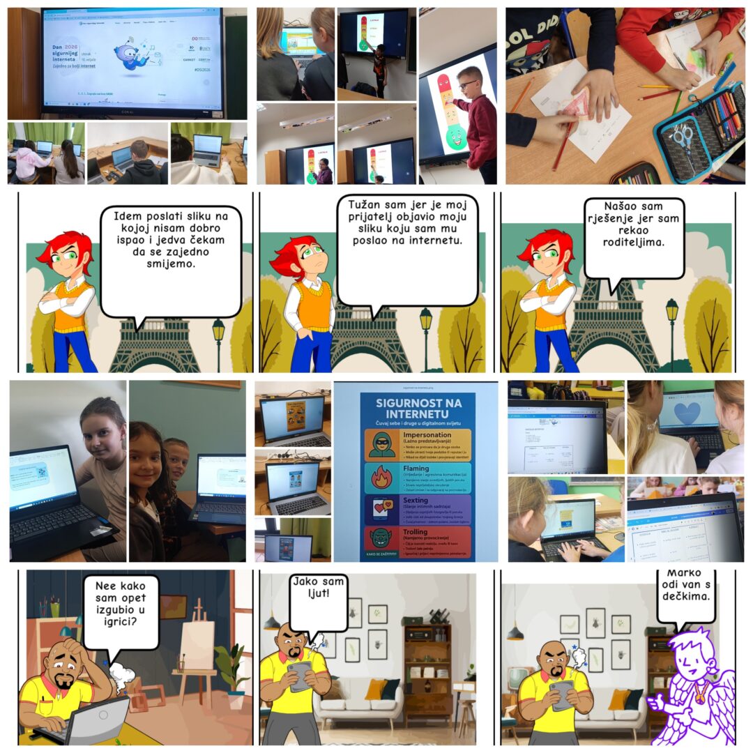 Trećaši su svoje doživljaje i rješenja pretočili u kreativne digitalne stripove u digitalnom alatu MakeBeliefsComix, dok su četvrtaši izrađivali plakate s pravilima pametnog i odgovornog korištenja tehnologije u MS Word-u.