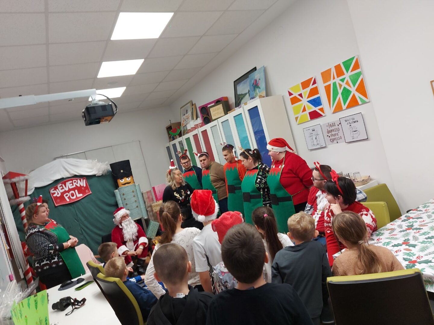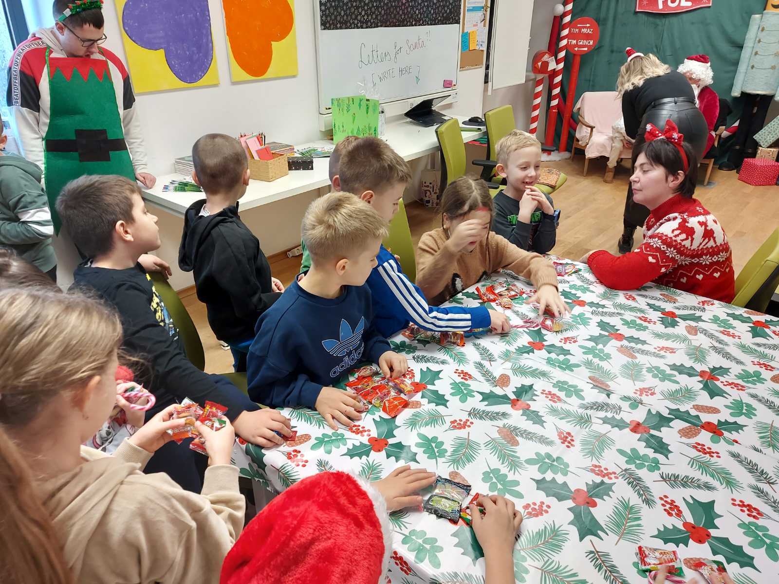 Jedan korisnik Udruge Vretenac s velikim je veseljem utjelovio Djeda Božićnjaka, dok su ostali korisnici bili u ulozi vilenjaka, dodatno obogaćujući cijeli doživljaj. Učenici su Djedu Božićnjaku šaptali svoje božićne želje, a iz njegove vreće izvukli su slatkiše, što je izazvalo oduševljenje i osmijehe na dječjim licima.