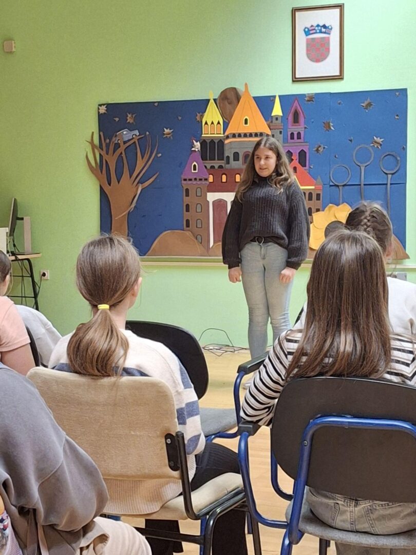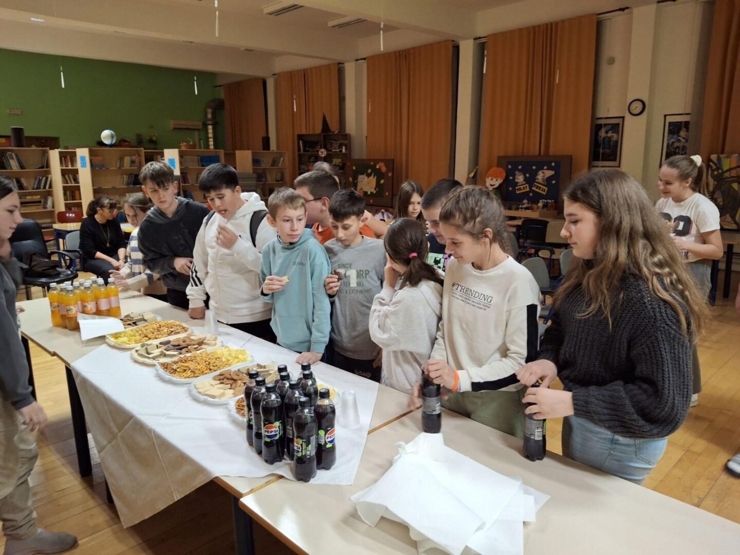 Zahvaljujemo našoj knjižničarki Jeleni na domaćinstvu, ravnateljici Martini i učiteljici Hani na podršci te našim kuharicama na slatkim i slanim malim zalogajima kojima smo na najbolji mogući način završili ovu poetsku svečanost.
