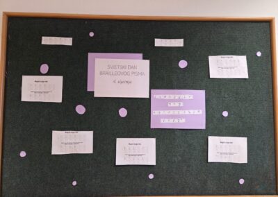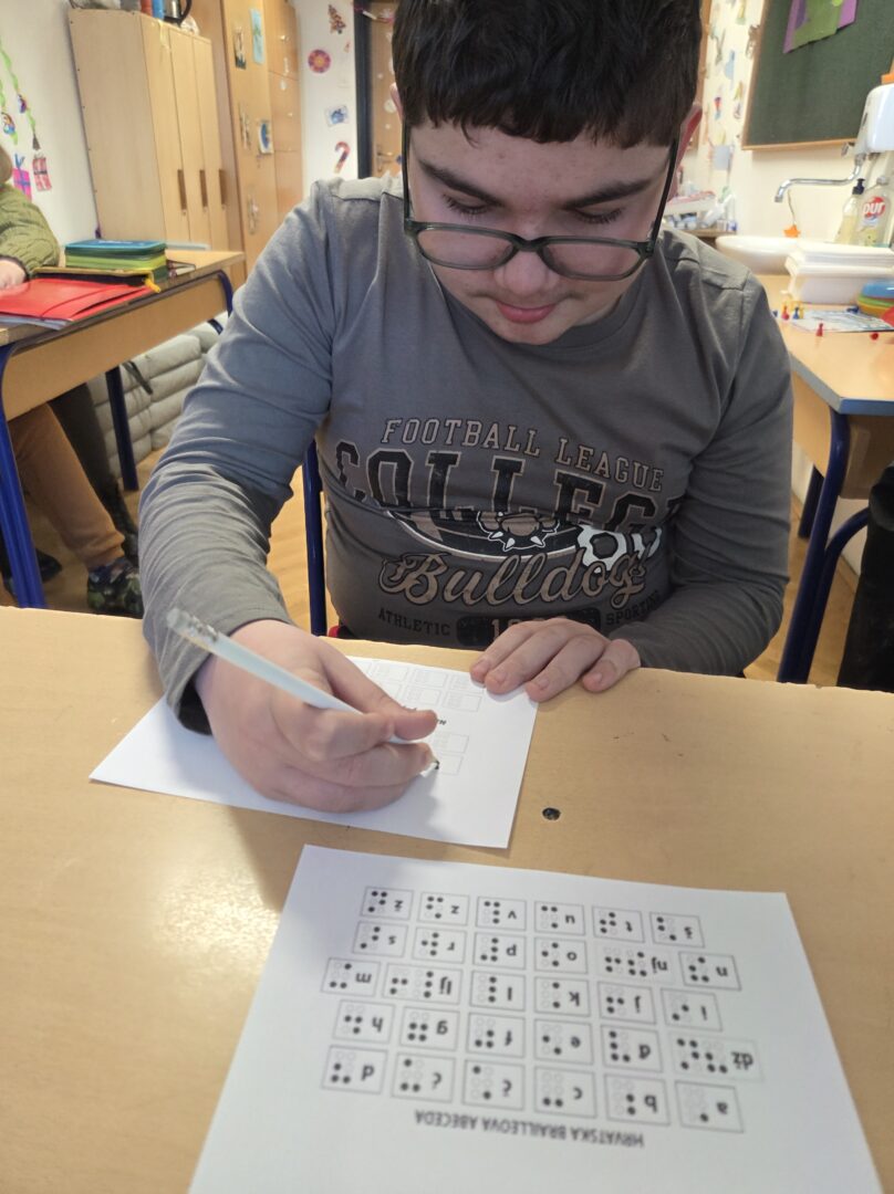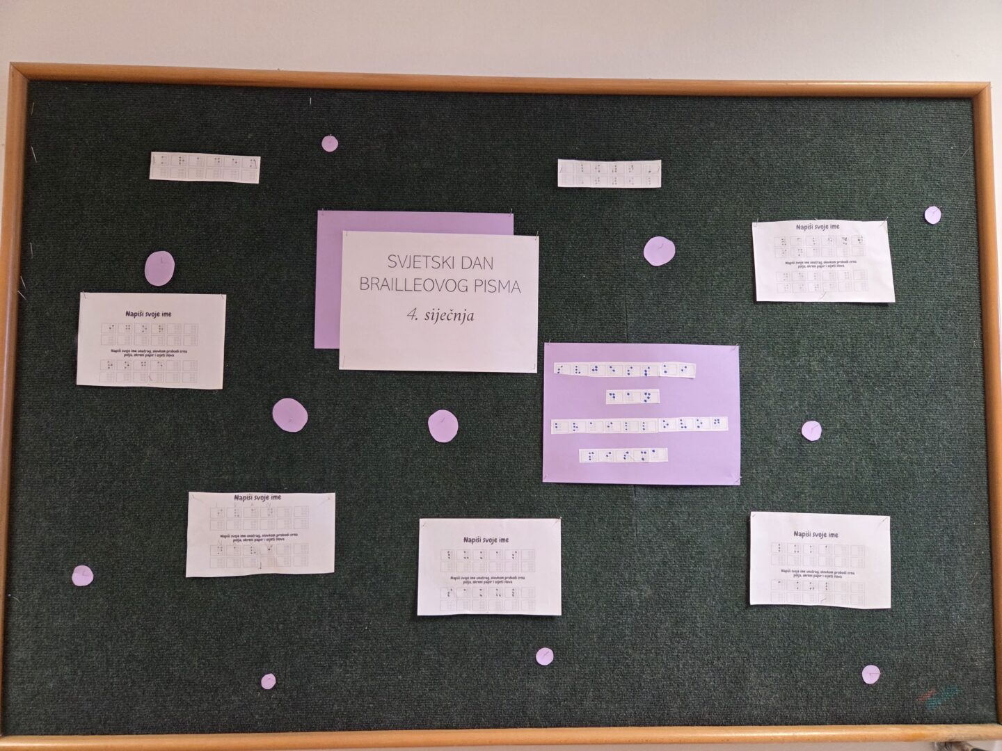 Učenici Posebnog razrednog odjela 12. siječnja obilježili su Svjetski dan Brailleovog pisma koji se obilježava 4. siječnja. Zanimljivim aktivnostima upoznali su se s osnovama Brailleovog pisma te su naučili kako se njime služiti. Aktivnost je protekla u poticajnom i veselom ozračju, uz razvijanje osjetljivosti i razumijevanja za osobe s oštećenjem vida.