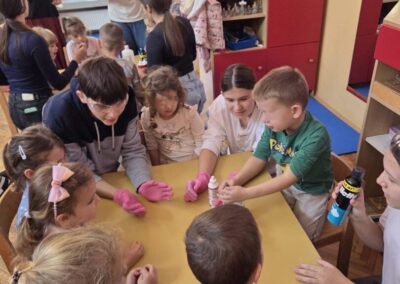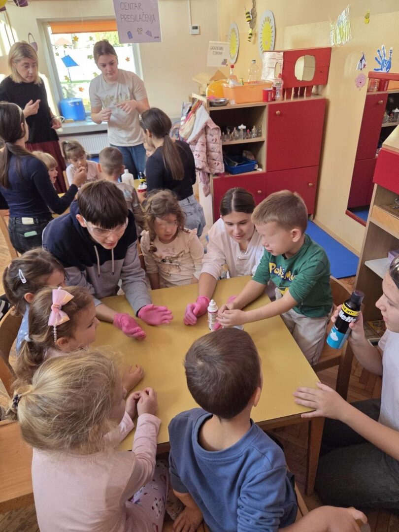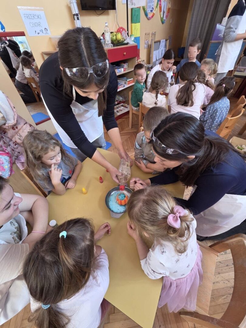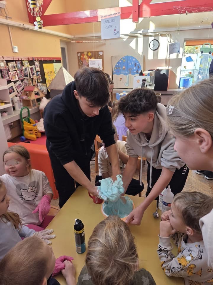 Povodom obilježavanja Svjetskog dana znanosti (9. studenog) učenici grupe Fuleren 6. 11. 2025. posjetili su Dječji vrtić Zeko, skupinu Pčelice. Naši vrijedni učenici STEM-ovci imale Pčelice odradili su vrhunski posao šarenim pokusima. Hvala Dječjem vrtiću Zeko i divnoj teti Nikolini Repinac na srdačnom gostoprimstvu.