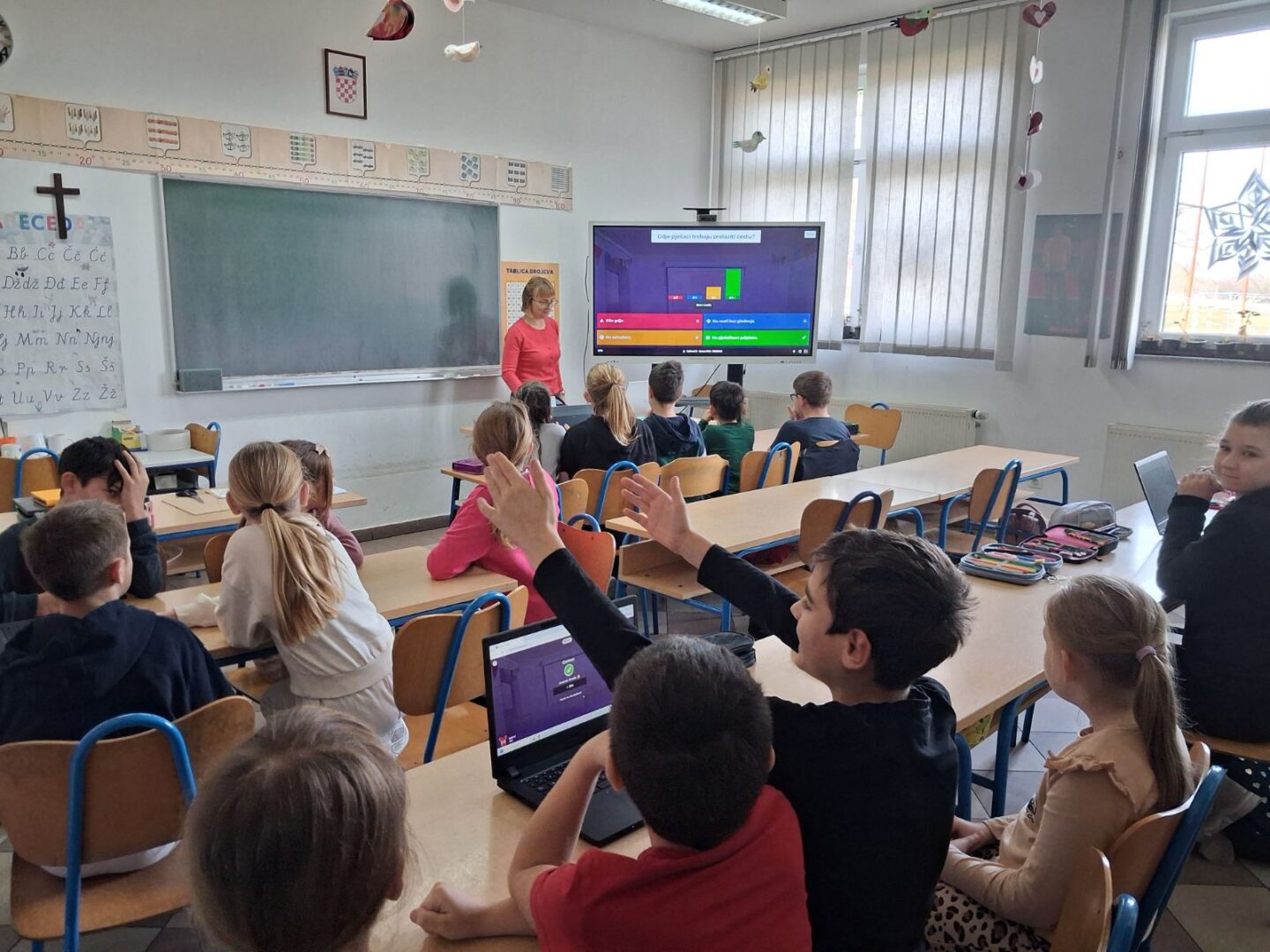 Učenici PŠ Kozice 30. 1. 2026. s učiteljicama su proveli jednu od aktivnosti projekta Putokazi. Uspješno je održan kviz znanja o prometu i prometnoj sigurnosti preko digitalne platforme Kahoot. Cilj kviza je igrom provjeriti znanje o prometu i razvijati prometnu kulturu učenika. Nakon kviza učenici su bojali prometnu bojanku sa savjetima za djecu sudionike u prometu.