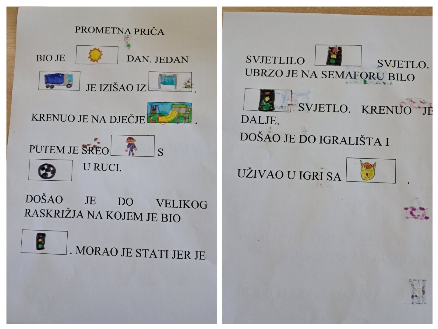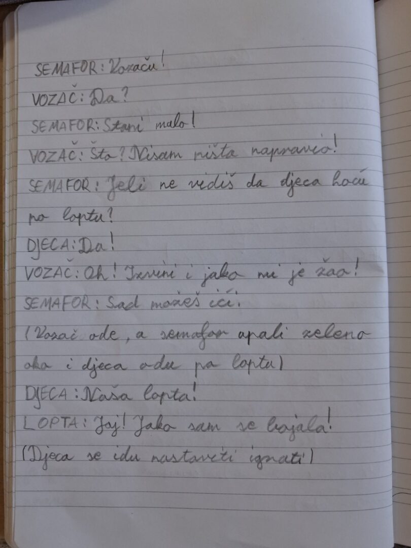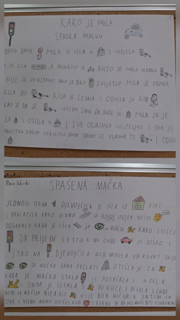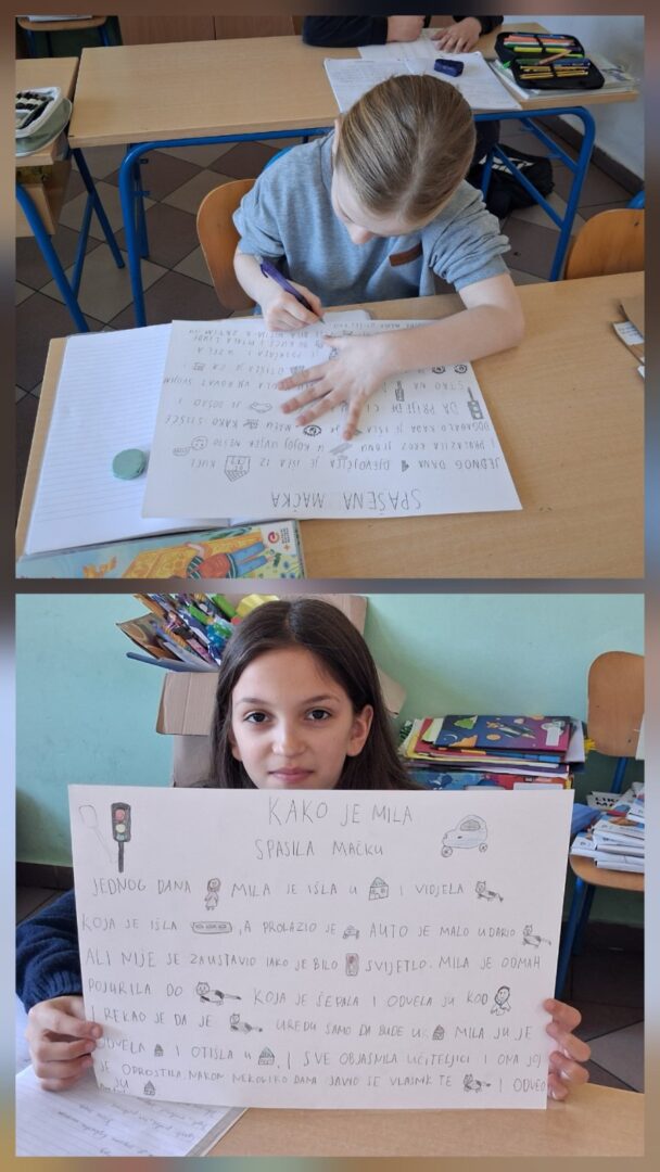 Učenici PŠ Kozice stvarali su tijekom veljače slikopriče i igrokaze o prometu i na taj način ponavljali prometna pravila te maštovito objašnjavali nepravilna i pravilna ponašanja u prometu. Učenici 1. i 2. razreda izradili su i svoje semafore te naučili pjevati pjesmicu o semaforu.