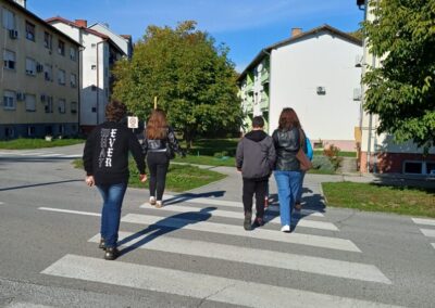 Šetnjom su upoznavali različite prometne znakove i učili o sigurnom ponašanju u prometu. Nakon toga izrađivali su prometne znakove, maketu raskrižja te prometni poligon na kojem su vježbali kretanje i pravilno ponašanje pješaka u prometu. Igrom, kretanjem i stvaralaštvom učenici su na zabavan način učili o prometu i sigurnosti.
