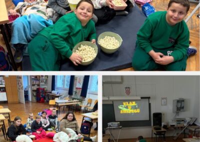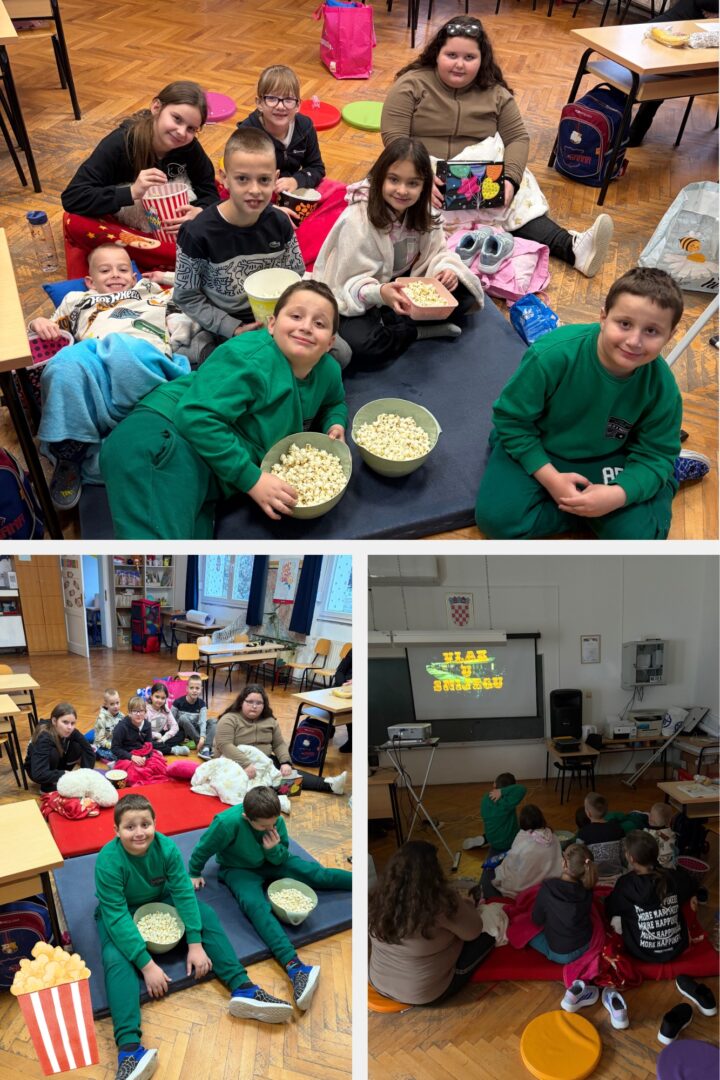 Učenici PŠ Novi Senkovac u ponedjeljak, 19. siječnja obilježili su Svjetski dan kokica na poseban i veseo način. Učionica se toga dana pretvorila u malo kino, ispunjeno ugodnom atmosferom, smijehom i mirisom kokica. Uz hrskave zalogaje učenici su uživali u gledanju pravog zimskog filmskog klasika – Vlak u snijegu. Film ih je podsjetio na vrijednosti zajedništva, prijateljstva i međusobne pomoći, a druženje je proteklo u veselom i opuštenom ozračju.