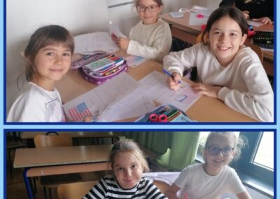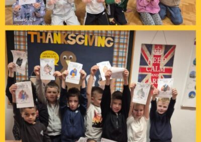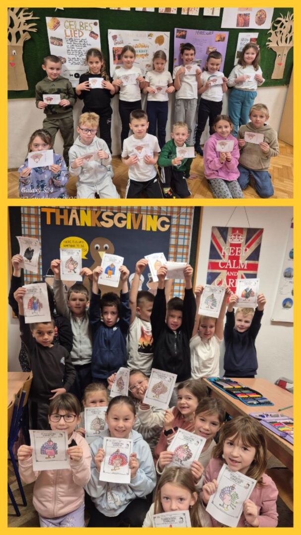 Učenici 1. i 2. razreda s učiteljicom Nadin Cuca obilježili su Thanksgiving različitim aktivnostima. Gledajući crtani film upoznali su se s počecima i načinima obilježavanja ovog blagdana, a zatim su i sami izrekli svoje zahvale. U zadatcima Simetrična purica i Oboji puricu djeca su vježbala precizno opažanje i uspoređivanje, razvijali su kontrolu ruke i slijeđenje uputa te ponavljali boje na engleskom jeziku. U aktivnosti I spy trenirali su usmjeravanje pažnje u situaciji s mnogo vizualnih podražaja te proširivali svoj vokabular vezan uz sam blagdan.