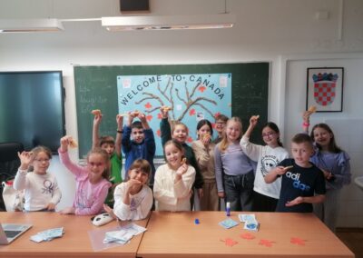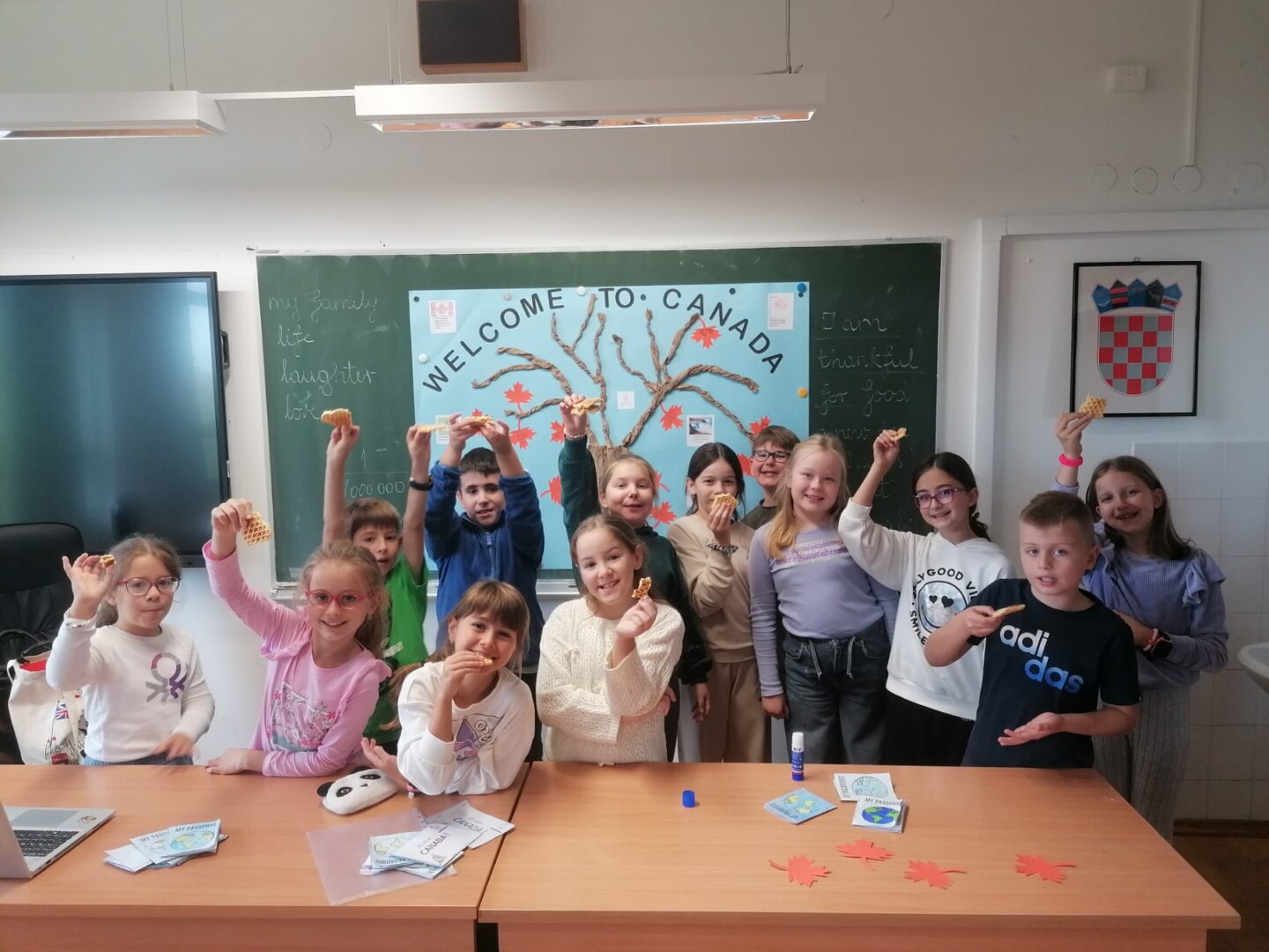 Tijekom listopada 2025. g. članovi English Cluba, pod vodstvom učiteljice Katarine Pejić, krenuli su na virtualno putovanje Kanadom. Učenici su se pritom “ukrcavali” u zamišljeni avion, koristili simbolične putovnice u koje su dobivali “pečate” te upoznavali obilježja Kanade gledanjem filma, izradom miniknjige i stabla zahvalnosti. U studenome 2025.g. “posjetili” su Sjedinjene Američke Države te rješavanjem tematskog kviza utvrdili znanja o njihovim znamenitostima. Izradili su slikovnu povijesnu priču s opisom nastanka Dana zahvalnosti. Na kraju putovanja počastili smo se tradicionalnim kanadskim i američkim specijalitetima.