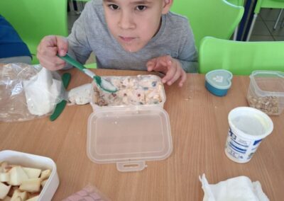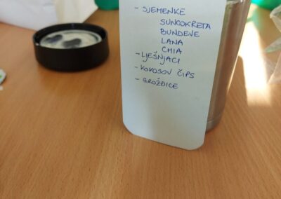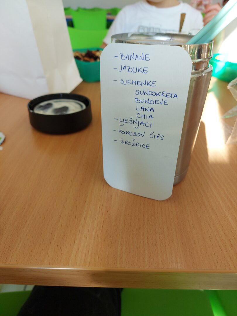 Dan je započeo razgovorom o važnosti zdravog doručka i namirnicama koje ga čine, koje namirnice vole, a koje ne, bi li bilo dobro ponekad probati i ono što ne volimo jer nas možda iznenade i uvesele novi okusi i sl. Učenici su prethodni dan zamoljeni da donesu orašaste plodove, jogurt, svježe i bobičasto voće, suho voće, chia sjemenke, zobene pahuljice i mnoge druge zdrave sastojke. Od prikupljenih namirnica samostalno su pripremali svoj “doručak iznenađenja”, otkrivajući nove okuse i uživajući u zajedničkom obroku.