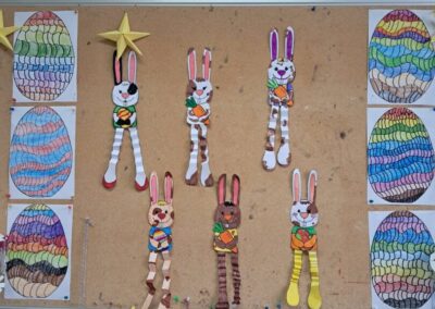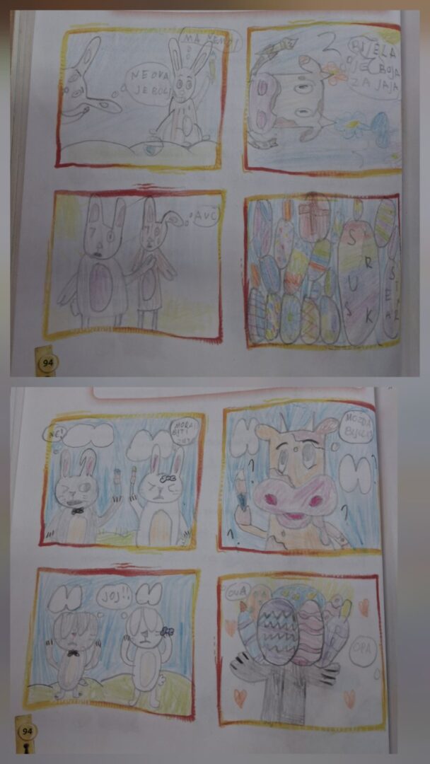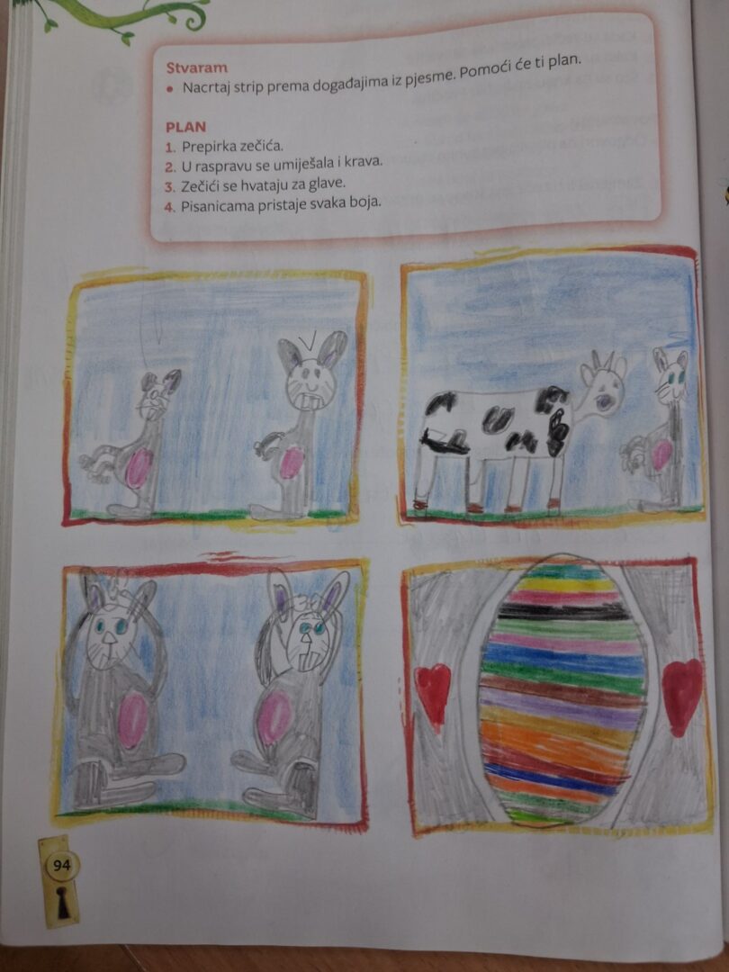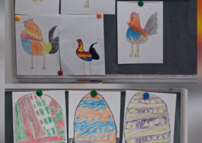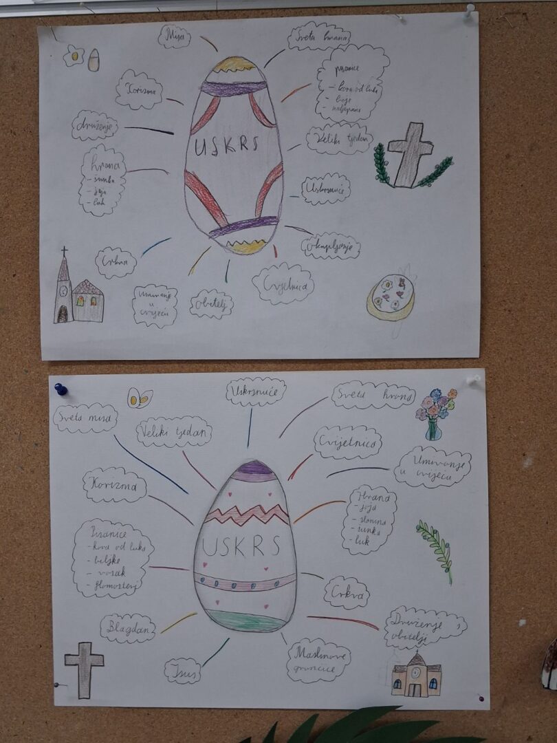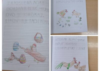 U tjednu prije početka proljetnog odmora u PŠ Kozice provodile su se različite aktivnosti kojima su se učenici, sa svojim učiteljicama, pripremali za nadolazeći blagdan Uskrs. Na integriranoj nastavi razgovarali smo o uskrsnim običajima, čitali prigodne pjesme, priče i izrađivali prigodne ukrase različitim likovnim tehnikama. Likovnim radovima ukrasili smo školske panoe. Na satu TZK-a imali smo potragu za pisanicama i prigodne igre. Aktivnosti su uspješno povezale tradicijske vrijednosti s dječjom igrom.