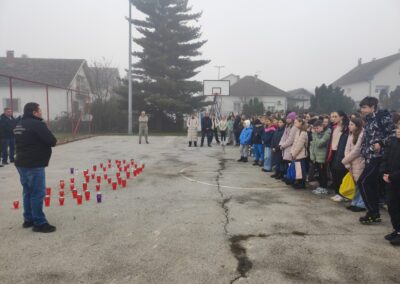 Učenici i djelatnici Osnovne škole Josipa Kozarca u suradnji sa slatinskom HVIDRA-om održali su komemoraciju za voćinske žrtve iz Domovinskoga rata u petak, 12. prosinca 2025.