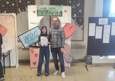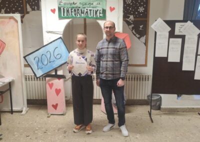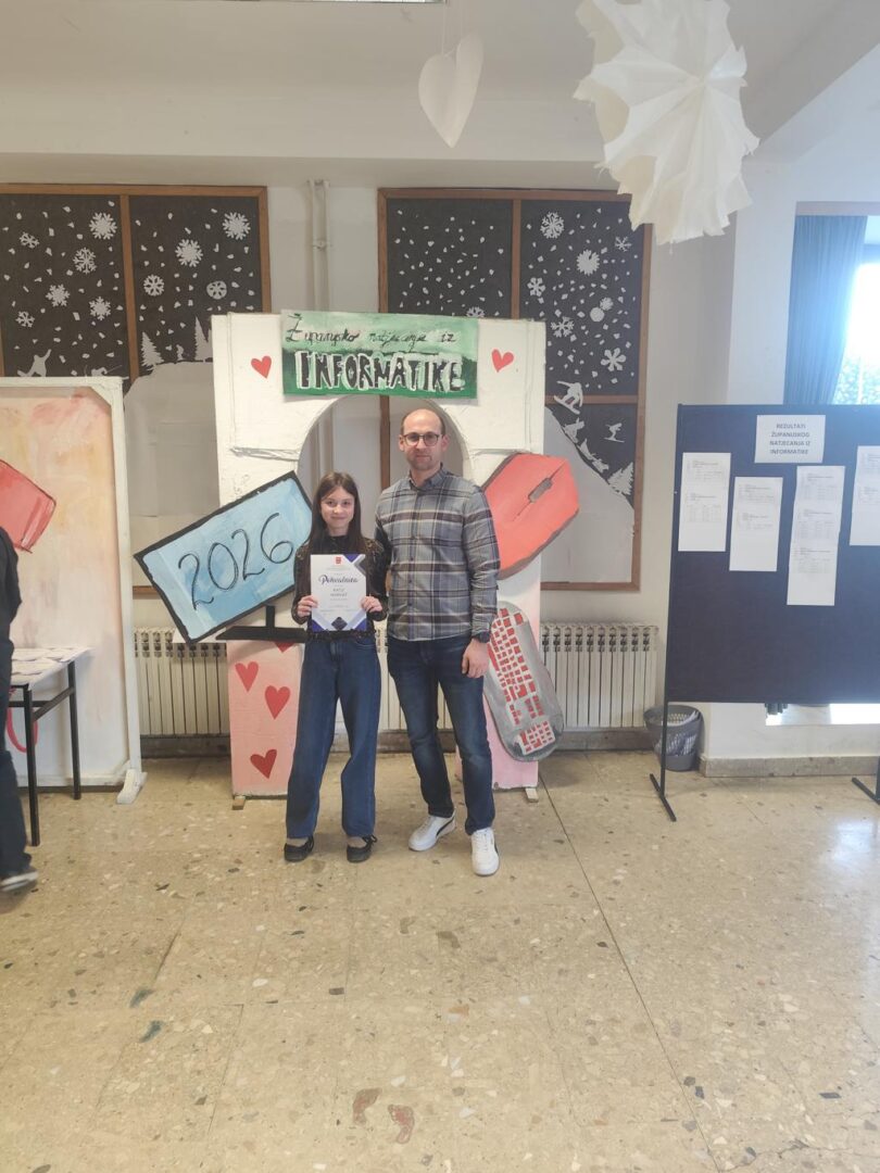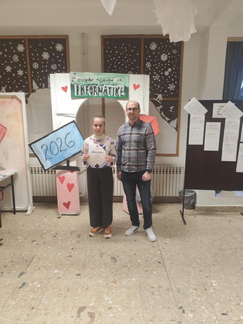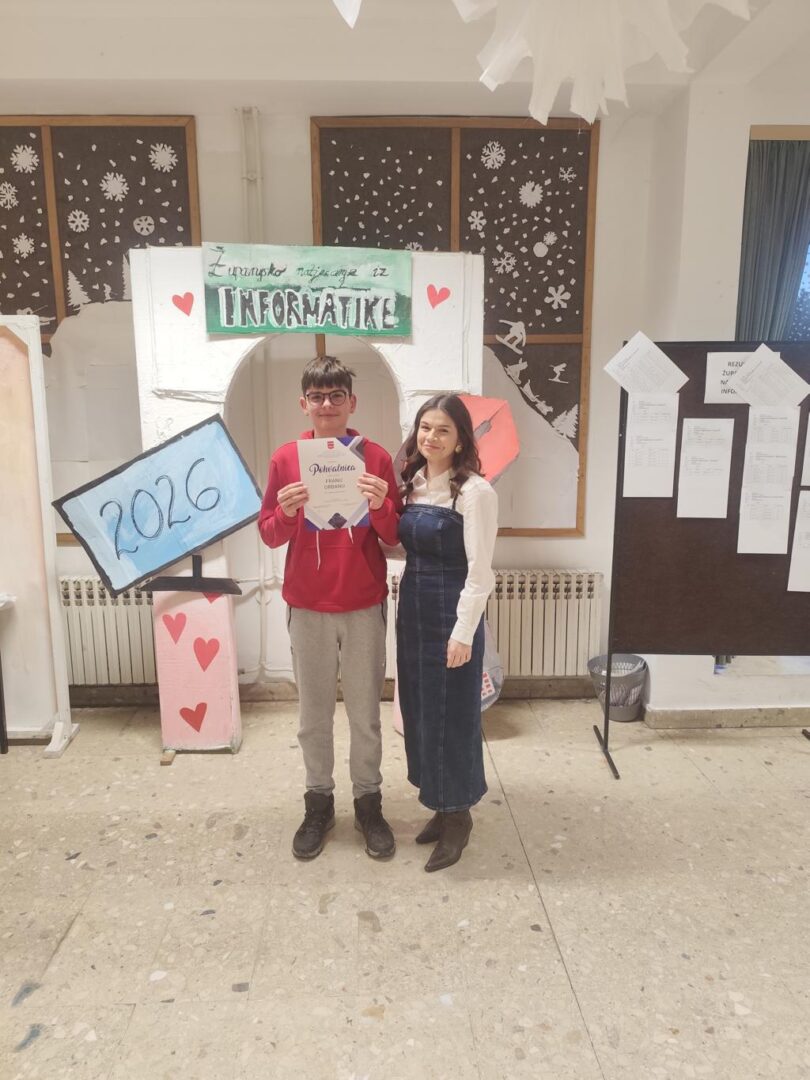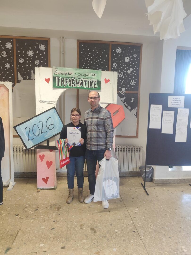 U petak, 13. veljače 2026. godine u prostorima Osnovne škole Eugena Kumičića u Slatini održano je Županijsko natjecanje iz informatike na kojem su učenici naše škole ostvarili zapažene i iznimno vrijedne rezultate.